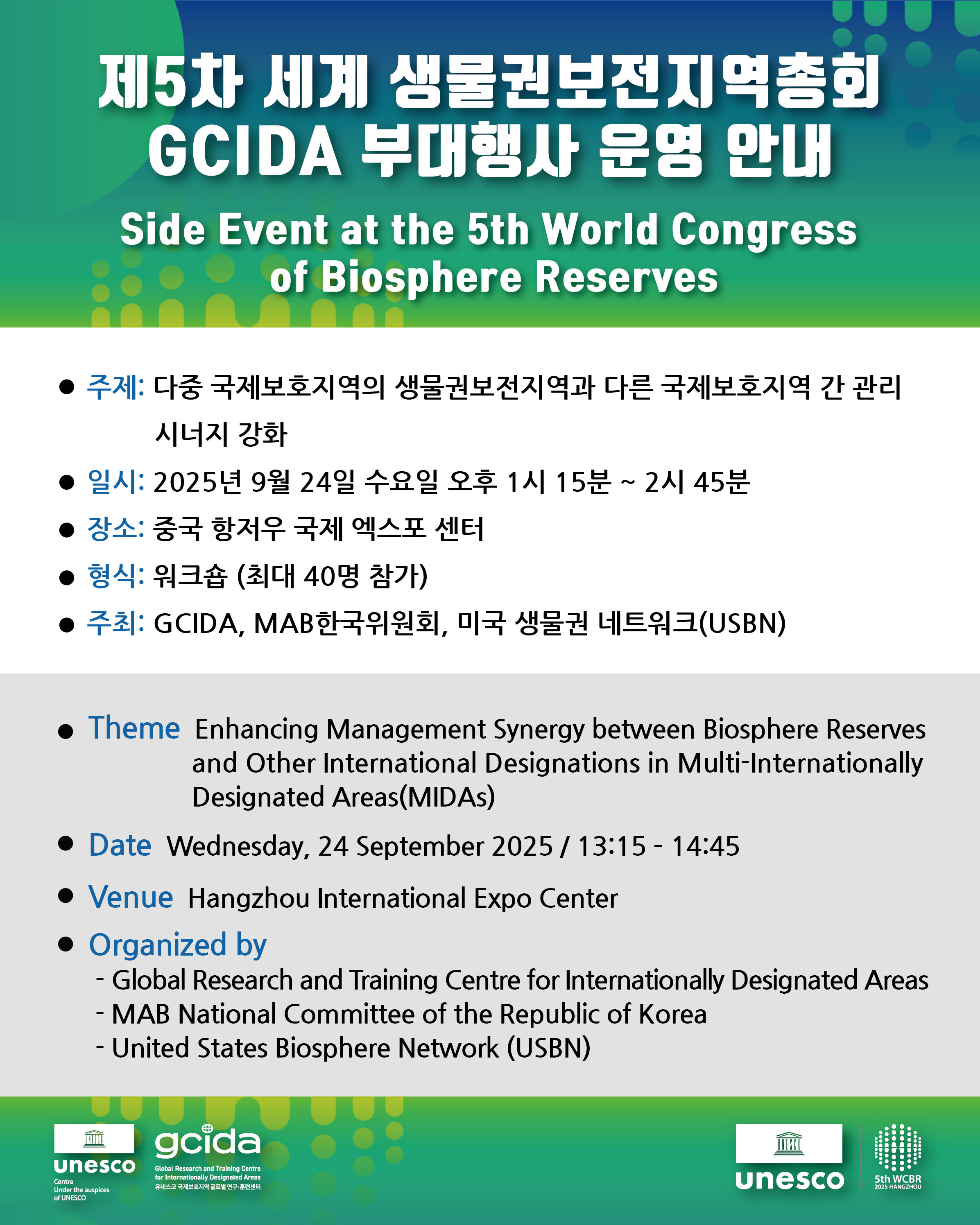 [NOTICE] Side Event at the 5th World Congress of Biosphere Reserves